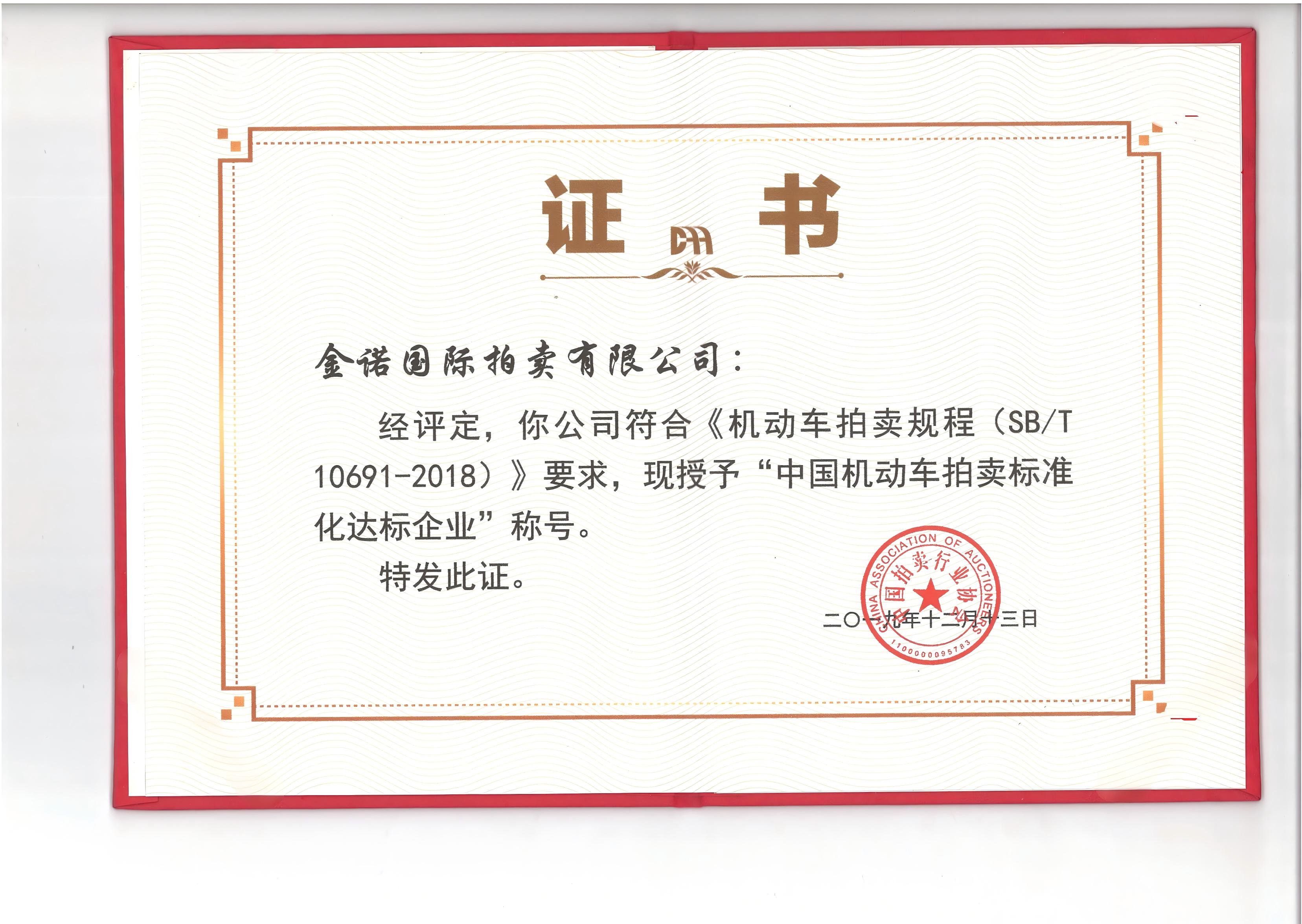 中國機(jī)動(dòng)車拍賣標(biāo)準(zhǔn)化達(dá)標(biāo)企業(yè)